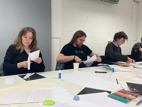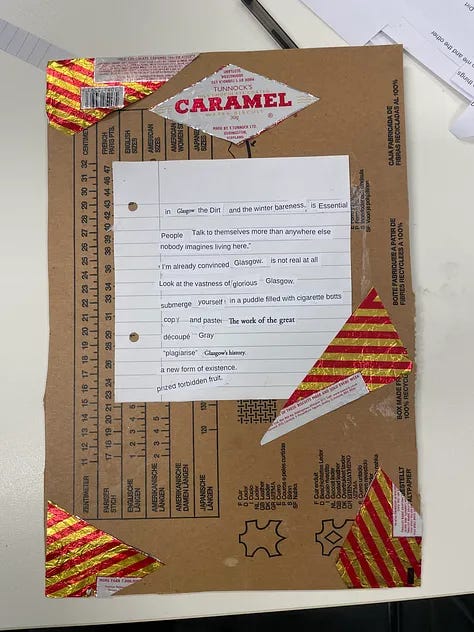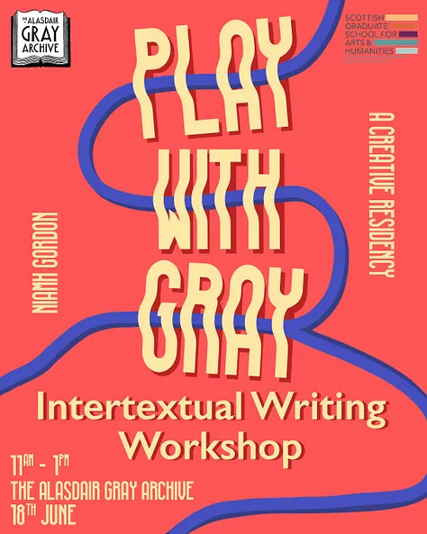 Niamh Gordon is a doctoral candidate in creative writing at the University of Glasgow and a member of art collective Babe Station. From Feb-Oct 2025 she is on a creative residency at The Alasdair Gray Archive supported by SGSAH. This is a continuation of a monthly ‘process diary’ where she shares reflections on her developing projects. The first in a series of workshops with Niamh, an Intertextual Writing Workshop, was held on Wednesday 18th June. Keep your eyes peeled for details of the next one very soon!